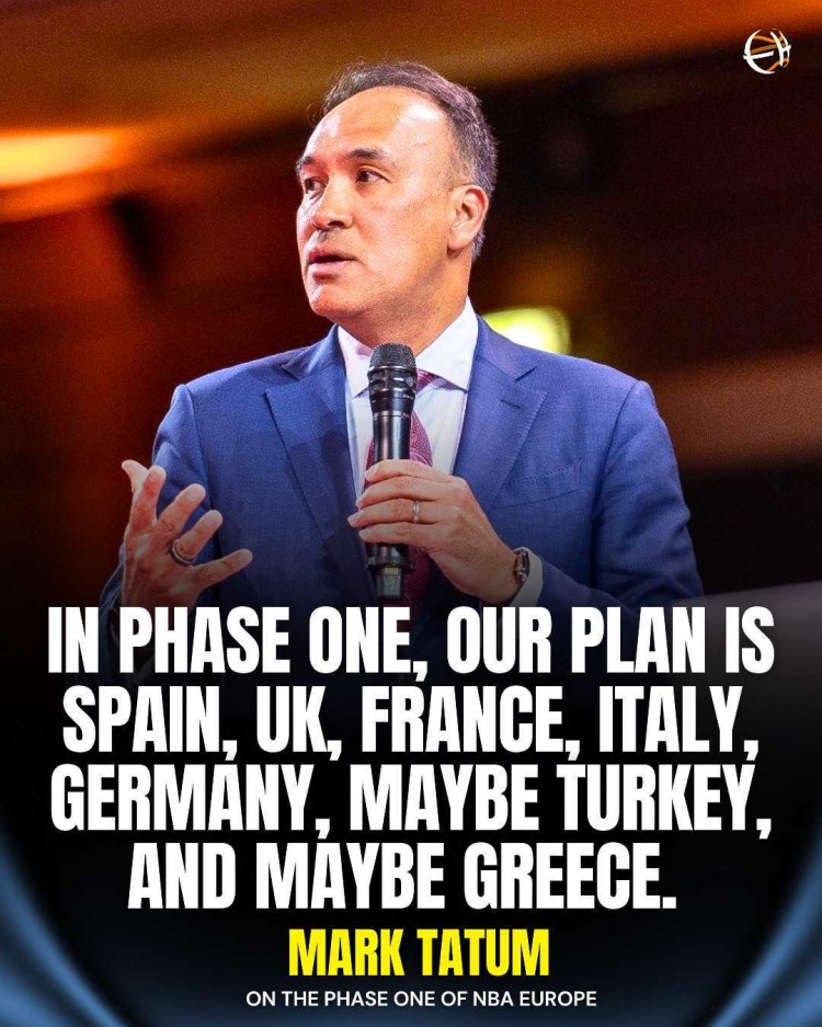 10月21日讯 欧媒Eurohoops报道,NBA副总裁马克-塔图姆谈到了NBA欧洲联赛最开始将设在英国、西班牙、法国、意大利、德国,以及“可能的”土耳其和希腊。
